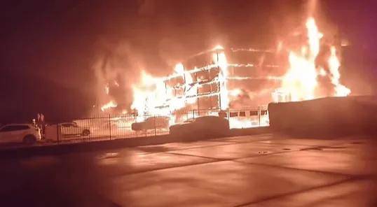 10月26日凌晨,安徽阜阳市颍州区长腾飞路的一家4S店发生大火。网上流传的视频及照片显示,现场火势猛烈,整栋建筑几乎被大火吞噬,最终烧得只剩下焦黑的钢结构框架。